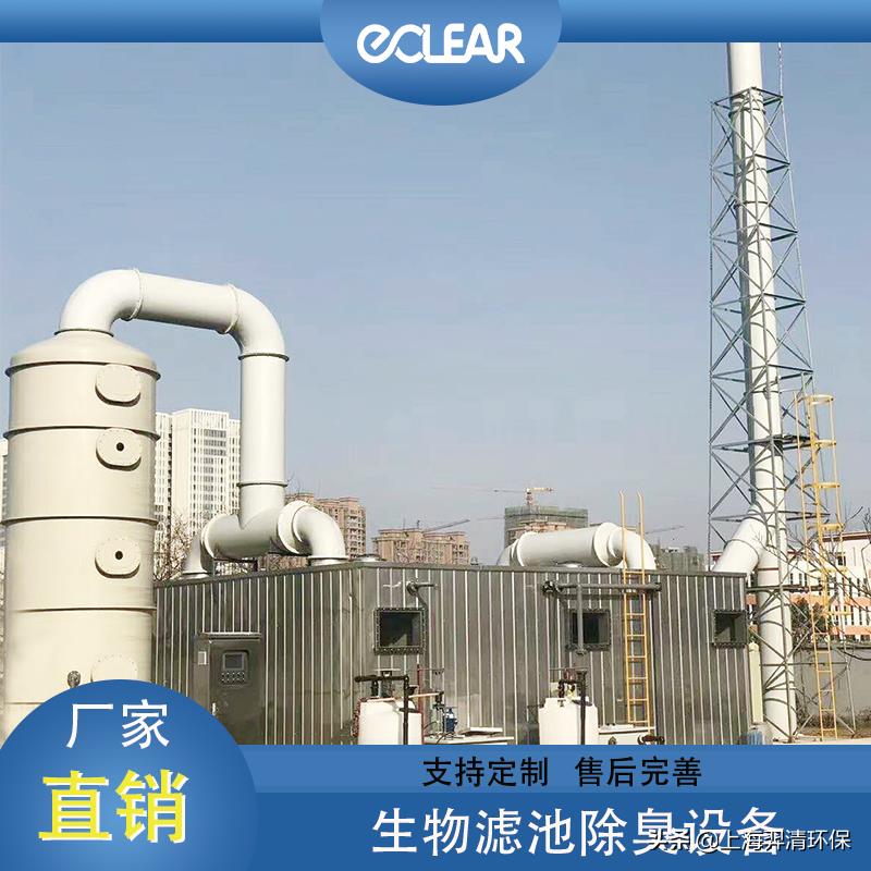 生物濾池除臭裝置采用生物分解法,臭氣通過吸氣管連接到生物除臭裝置,混合氣體通過生物過濾器時,與附著在填料上的生物接觸,生物體通過自身的生化反應(yīng)吸收混合氣體中的惡臭成分,轉(zhuǎn)化為二氧化碳、水,維持生物體的新陳代謝。